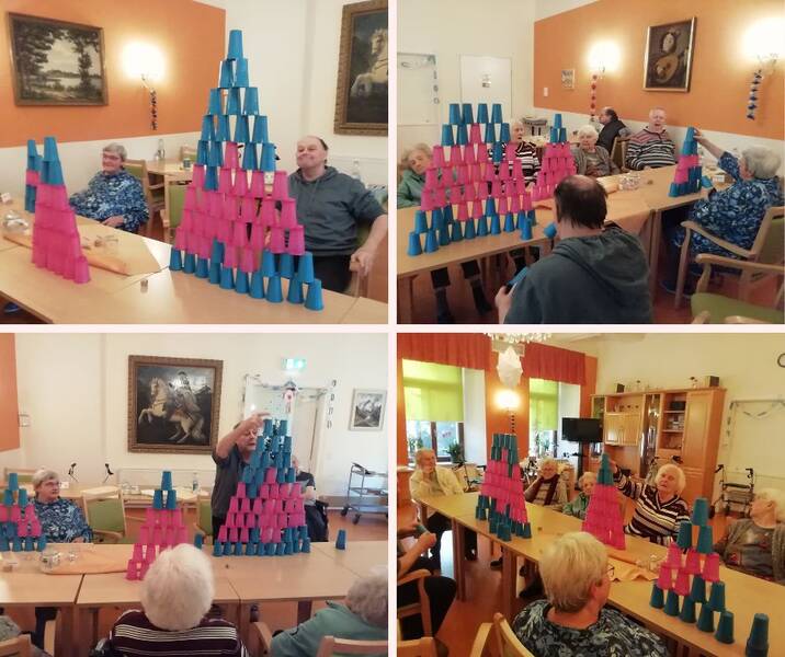 Die erste Gruppe spielte verschiedene Märchen vor, die erraten werden mussten und anschließend wurde gemeinsam winterliche Dekoration gebastelt. Die zweite Gruppe hatte eine Fühlkiste dabei, bei der unsere Bewohner ertasten und erraten durften, was sich darin befindet.